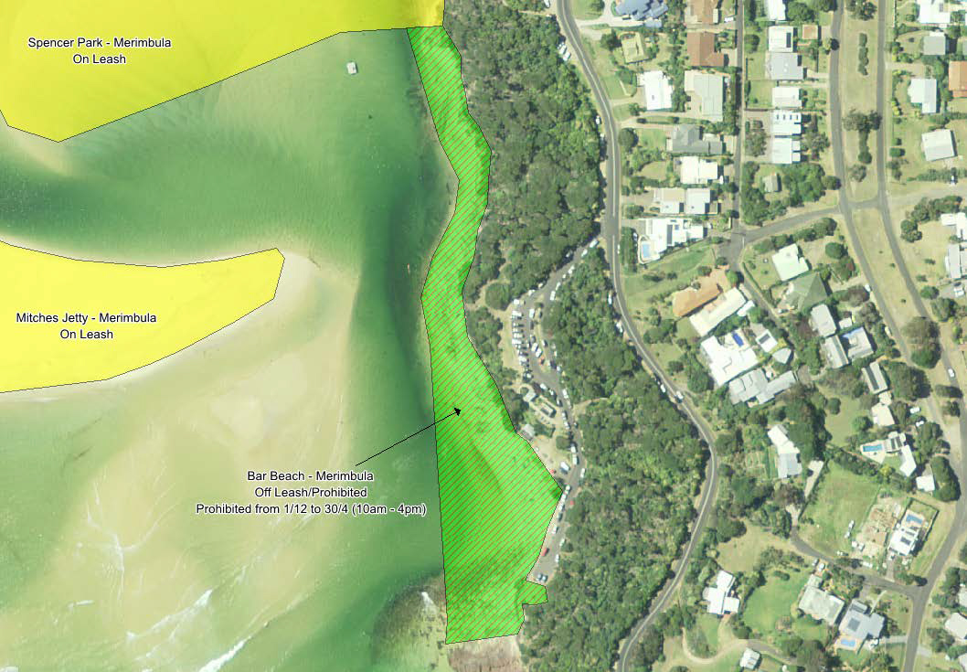 Bar Beach(JPG, 360KB): the foreshore area north of the beach below the Bar Beach kiosk, west of foreshore vegetation and south of Spencer Park except for Dec 1-30 Apr between 10am and 4pm when it is a dog prohibited area.