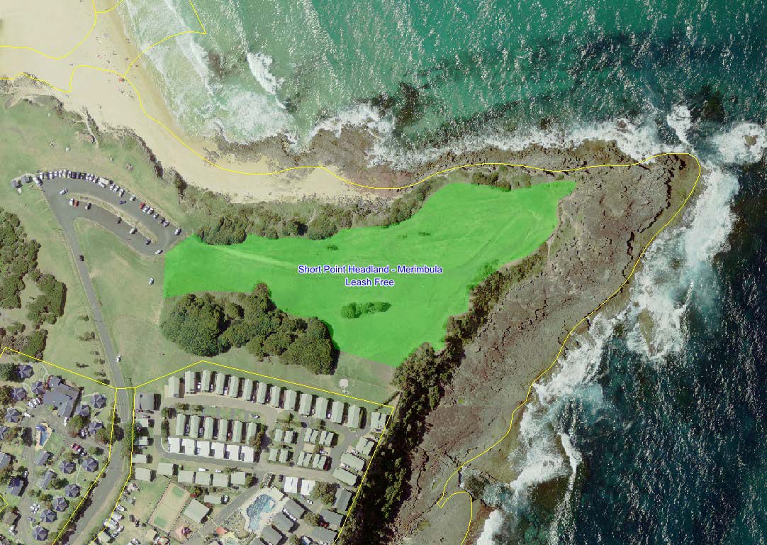 Short Point Headland(JPG, 196KB): (Accessible) – the reserve area west of the Short Point Beach paved car park, north of the property boundary of the Holiday Park at parcel 21592 and a line drawn east as a continuation of the northern boundary of parcel 21592 and south and west of the cliff edge.